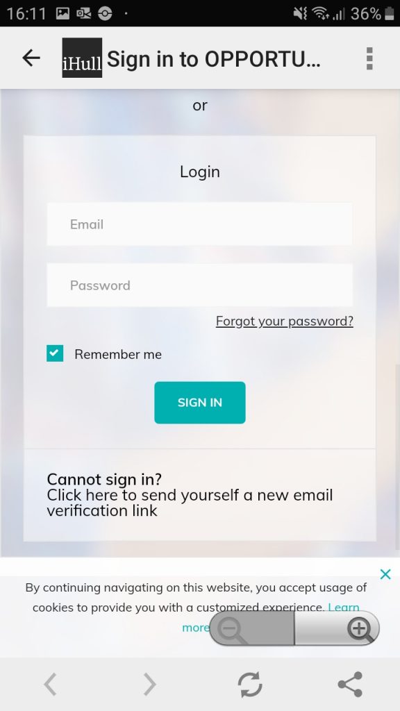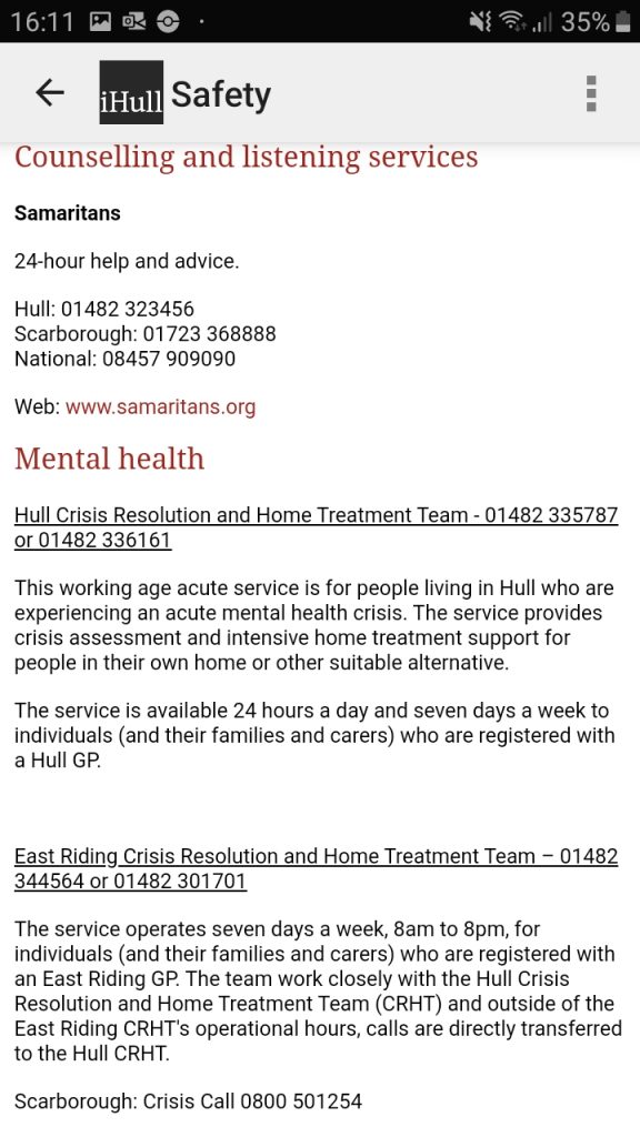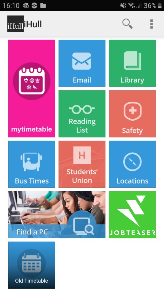 Starting with the main page after the user has signed in, the colours used and layout of buttons are very unappealing to look at. The layout of the panels and the menu bar along the top are also aligned very poorly, with the ‘iHull’ text being too close to the iHull logo and the text in each panel not aligned consistently with each panel’s edges. Although a pro for this page is it is very clear to see and access each service, which is perfect for newcomers to the app. I rate this page a 3/5.