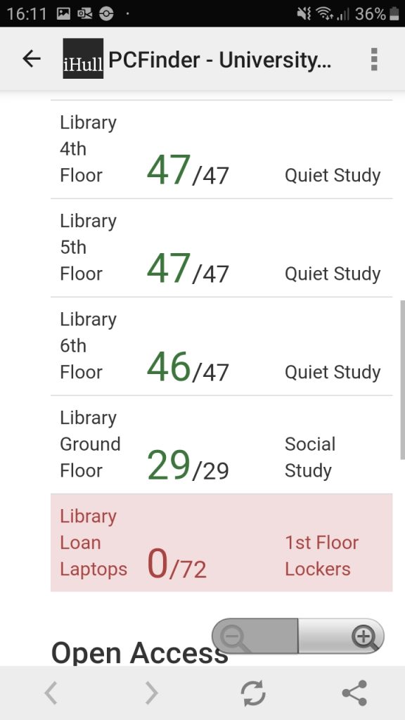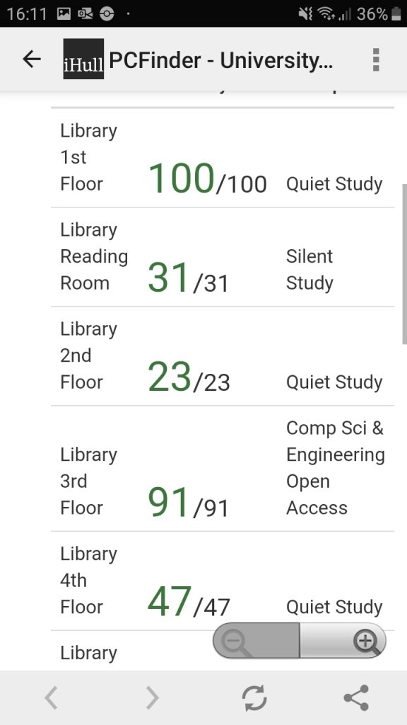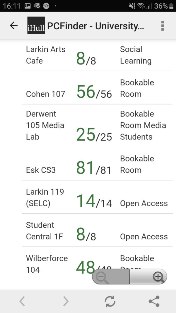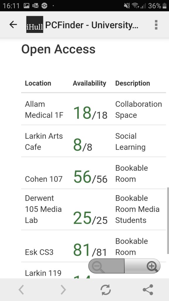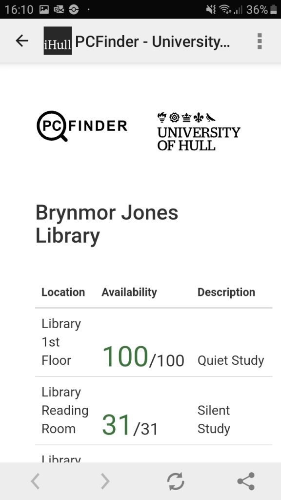Surprisingly the PC finder page is quite useful, being straight to the point by showing the user instantly the current live status of the campus PCs and their locations, although it could benefit from additional information or features. I rate this page a 4/5.